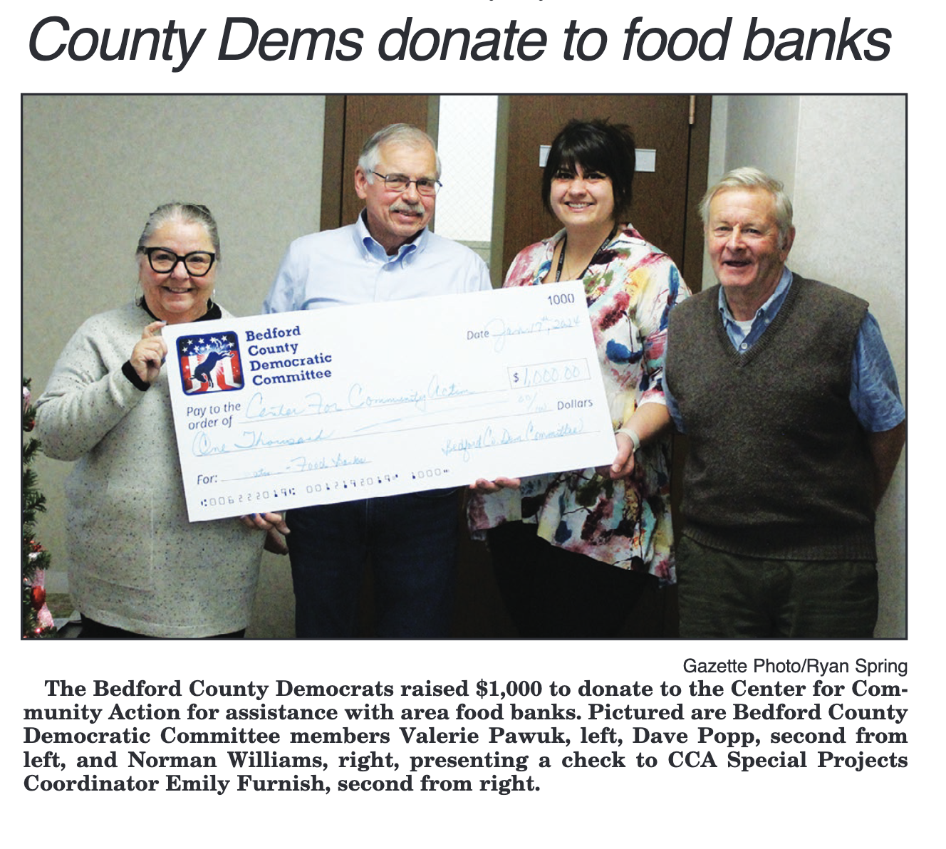 Bedford County Democrats provided a total of 177 fans, at no cost, to seniors and families in need. Thanks to all who donated and Bedford True Value for making this possible.